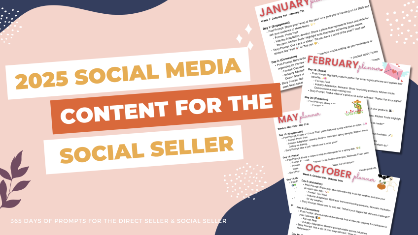 365 days of prompts made for the social seller and direct seller. Easy, ready to use Post Prompts / Reel ideas / Story Prompts